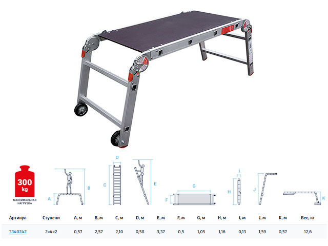 Рабочие подмости проф. 2х4х2 NV 3340 Новая Высота (макс. нагрузка 300кг)