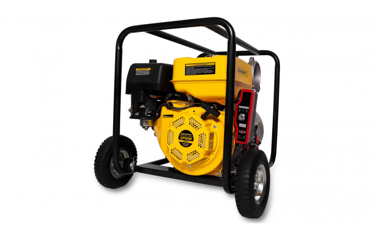 Мотопомпа CHAMPION GP100E (4″ 1600л/мин 8/26 9лс 6,5л 47кг эл.стартер, колеса)