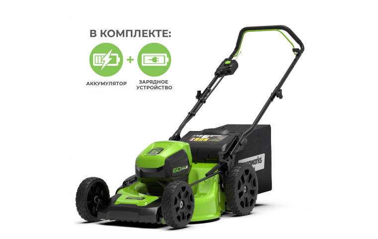 Газонокосилка аккумуляторная GreenWorks GD60LM46HPK4 46см 60В (в комплекте АКБ 4А/ч + ЗУ)