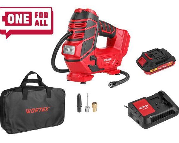 Устройство имеет встроенный фонарь для освещения рабочего места. Для удобного использования предусмотрены шланг 80 см высокого давления для накачивания воздуха и шланг 42 см низкого давления для откачивания. Вес компрессора без аккумулятора всего 1,97 кг, а благодаря своим компактным размерам инструмент не займет много места в багажнике автомобиля.