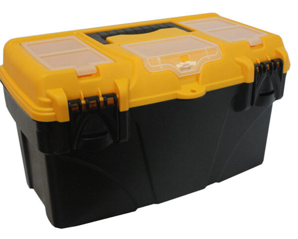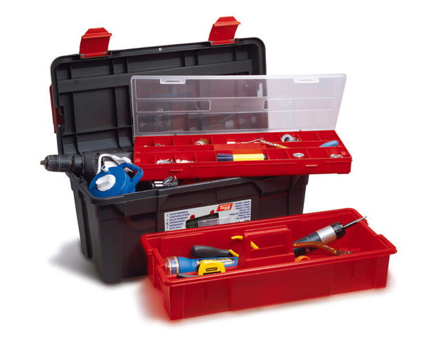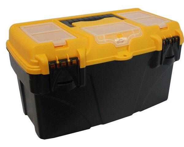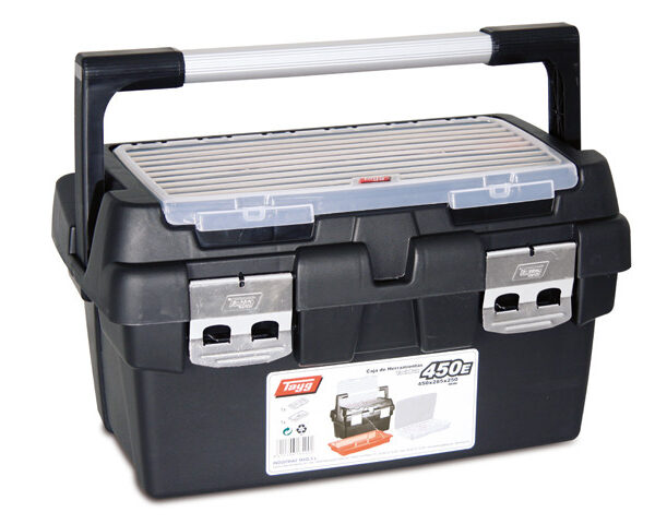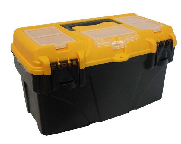 Содержит внутренний лоток, 3 верхних съемных прозрачных блока для мелочей, консоль. Имеет 2 застежки для надежной фиксации, петли для навесного замка.