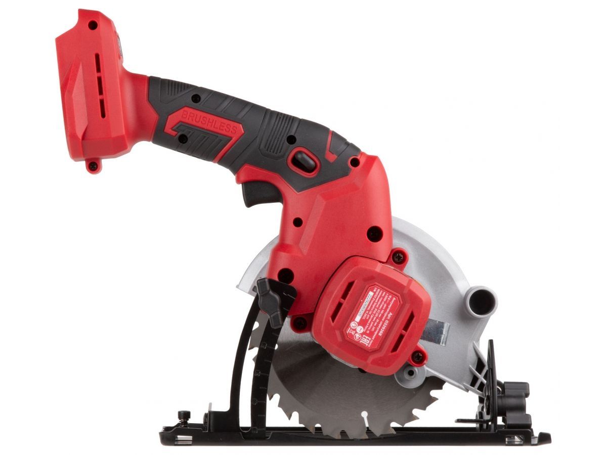 Мощная, но при этом легкая и компактная циркулярная пила подойдет для продольных и косых пропилов при максимальном уровне комфорта. Обладает бесщеточным двигателем, что позволяет достичь большей производительности, а также дольще сохранить ресурс инструмента. Имеет прорезиненную рукоятку. Регулируемый угол реза.