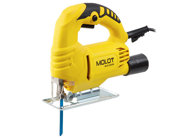 Лобзик оснащен удобной прорезиненной рукояткой. Предусмотрен быстрозажимной патрон для быстрой замены пильных полотен. Стальная подошва регулируется под разными углами. Возможно подключение пылесоса.