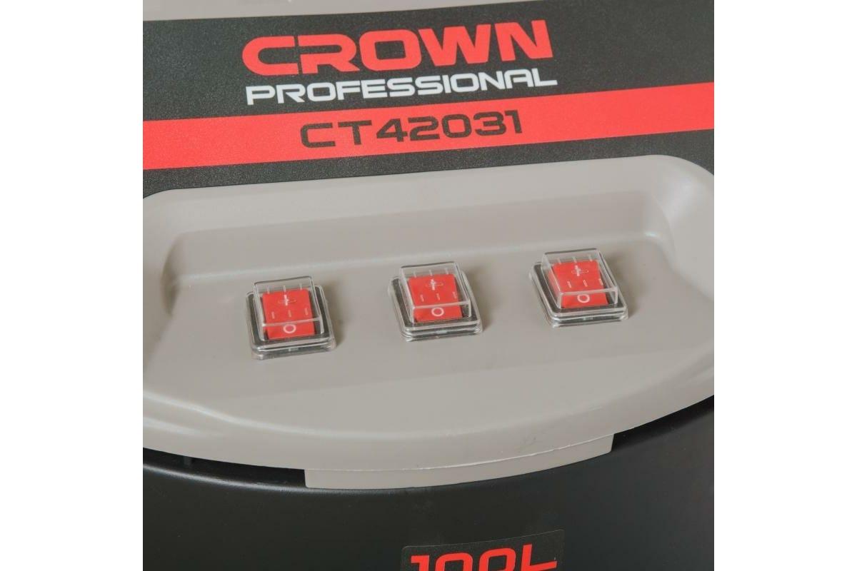 Crown CT42031 — промышленная установка, которую применяют для уборки мусора на строительных площадках, в производственных цехах и бытовых условиях — гаражах, мастерских. Если применять специальный фильтр, то также можно устранять с различных поверхностей негорючие жидкости. Эксплуатация прибора максимально проста и не требует сложного ухода.