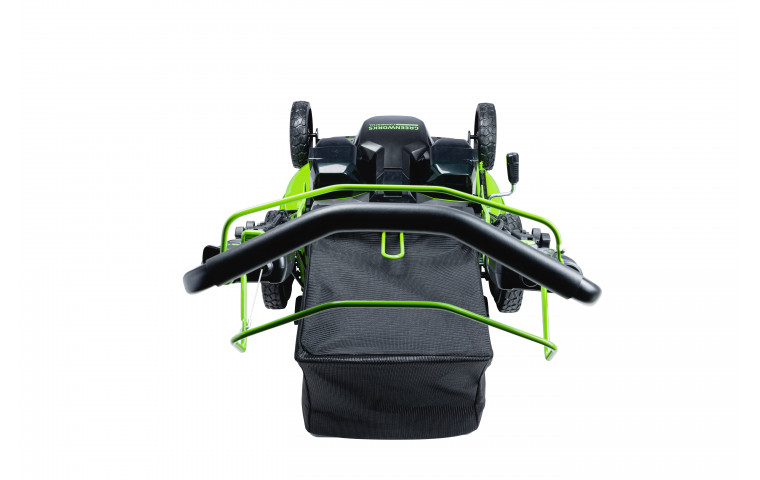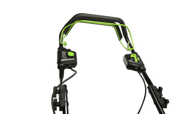 - TwinForce: два ножа по 30 см вращаются в противоположных направлениях, создавая мощный воздушный поток, поднимающий траву