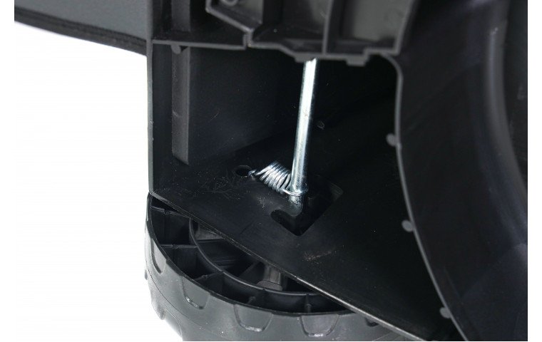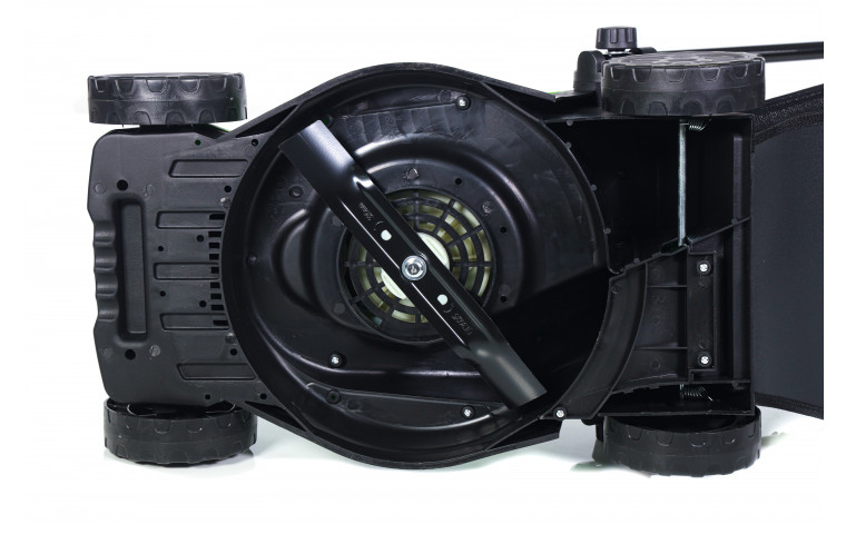 Малые габариты и вес всего 9,2 кг обеспечивают косилке высокую маневренность. Это позволяет работать на участках различной формы. Материал деки выполнен из ударопрочного пластика. Благодаря складной ручке и каркасному травоборнику газонокосилка будет занимать минимум места в сарае или гараже.