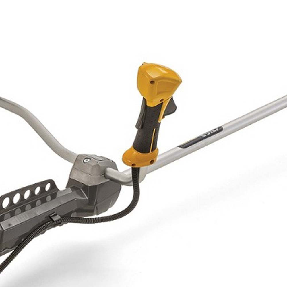 Рукоятка эргономичной формы имеет прорезиненные вставки и предотвращает случайное соскальзывание. Все элементы управления сосредоточены на правой ручке, что обеспечивает дополнительный комфорт во время работы. Защитный кожух надежно закрывает режущую насадку и предотвращает травмирование. Рабочая ширина бензинового триммера STIGA SBC 253 D составляет 45 см, вес – 8,9 кг.
