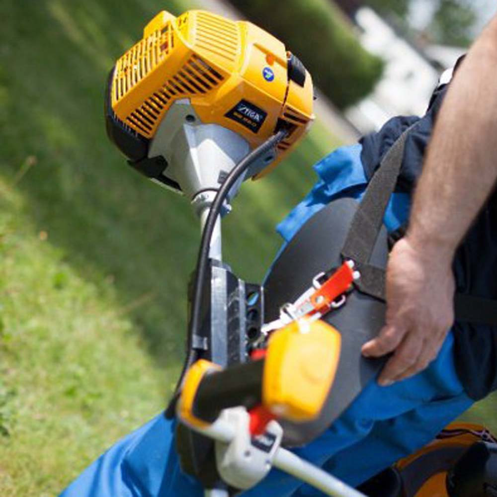 Удобная система крепления Плечевой ремень крепится за одно из пяти гнезд механизма крепления для обеспечения наилучшей балансировки триммера.