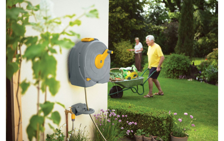 Катушка HoZelock 2496 настенная Fast Reel со шлангом 40 м 1/2", в комплекте 2 Коннектора (12,5 мм и 15 мм) , Коннектор с Аквастоп (12,5 мм и 15 мм), Наконечник для шланга 2292, Коннектор для крана вне помещений 12" 34" (12,5 мм и 19 мм) 2184.