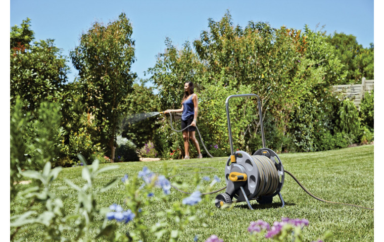- Легкая намотка: Намотка шланга, когда он наполнен водой, может стать трудной задачей, поэтому HoZelock разработал свои тележки так, чтобы шланг наматывался легко. Небольшой диаметр внутреннего барабана и приводная ручка для намотки значительно облегчают задачу.