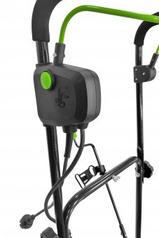 Снегоуборочный шнек выполнен из армированного пластика, что делает его прочным и надёжным, а так же позволяет бережно очищать декоративные покрытия не царапая их. Модель оснащена регулировкой угла выброса снега и дополнительными колёсами для удобства использования и системой защиты от случайного включения.