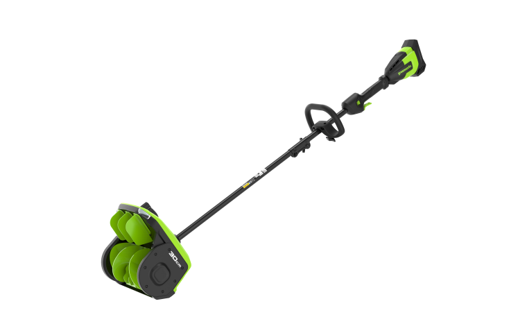 Снегоуборщик-снеголопата Greenworks GD40SS2 с регулируемым направлением выброса — лопата из серии 40В для облегчения уборки территорий от снега. Имеет ширину шнека 30 см. Оснащена бесщеточным двигателем и регулировкой выброса снега.