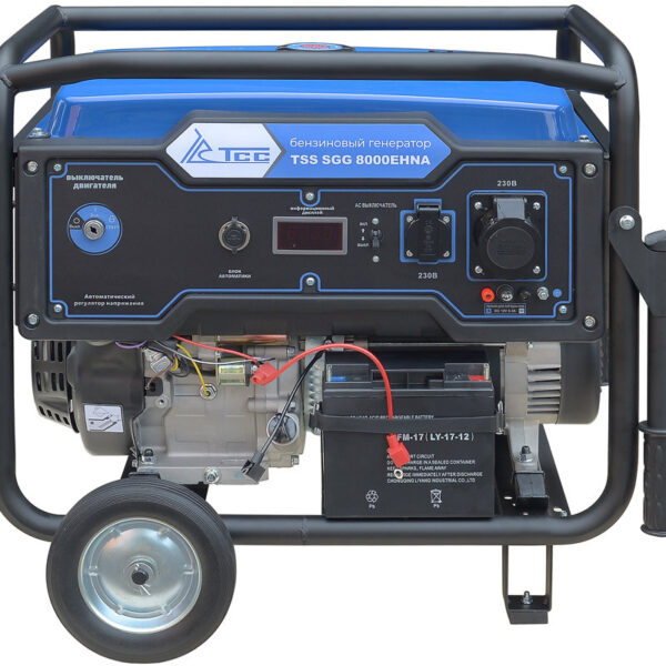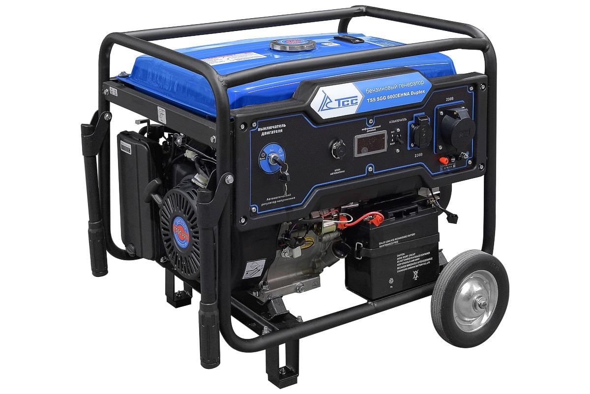 Бензогенератор с электростартером и с разъемом для подключения блока автоматики. TSS SGG 6000ENA Duplex при номинальной мощности равной 6,0 кВт, обеспечивает кратковременную пусковую мощность до 14 кВт. Генератор DUPLEX вытягивает самых тяжелых индуктивных потребителей, это его отличительная особенность. предназначен для выработки электроэнергии с основными характеристиками: напряжение — 220 вольт, частота 50 Гц и номинальной мощностью 6 кВт.