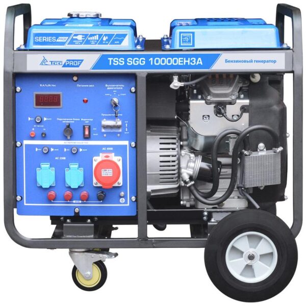 Генератор трехфазный бензиновый 8 кВт с электростартом и разъемом для подключения блока автоматики. Профессиональная серия бензиновых генераторов с высококачественными двигателями увеличенного ресурса LONCIN. Бензиновый генератор TSS SGG 9000E3LA предназначен для выработки электроэнергии с основными характеристиками: напряжение — 400/230 вольт, частота 50 Гц.
