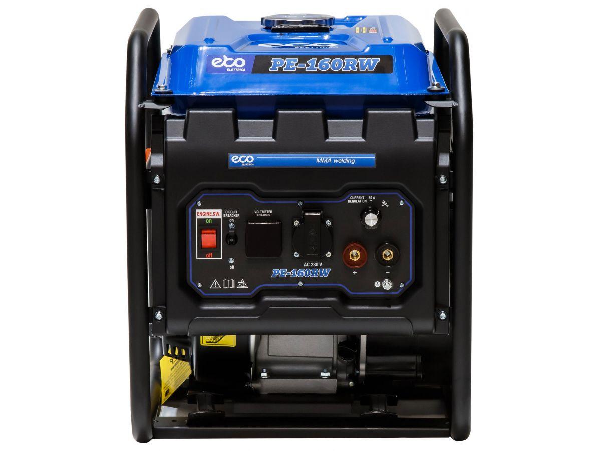 Сварочная электростанция со встроенным источником электрической энергии и двигателем внутреннего сгорания предназначена для использования в качестве автономного источника ручной дуговой сварки или подключения электрооборудования мощностью до 1,1кВт. Бензиновая станция с функцией сварки представляет собой комбинированную электростанцию для сварки и энергоснабжения. Современный сварочный модуль с 2-х режимным сварочным инвертором позволяет выбрать силу тока 80А или 160А. Система автоматического управления дросселем регулирует обороты двигателя в зависимости от величины потребляемой нагрузки, оптимизируя расход топлива и моторесурса. Электростанция оснащена цифровым дисплеем с отображением: напряжения, частоты тока и счётчиком мото-часов.