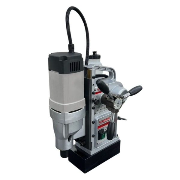 - Усиленное магнитное основание гарантирует надёжную фиксацию станка на горизонтальных, вертикальных и потолочных поверхностях, исключая смещение во время сверления.