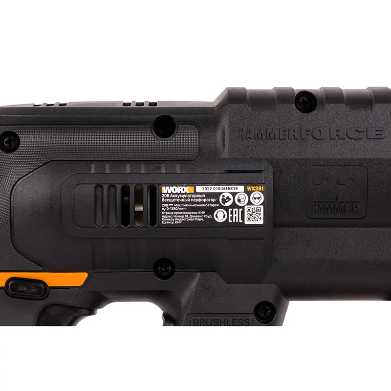 Перфоратор аккумуляторный WORX WX381.9, 20В, без АКБ и ЗУ